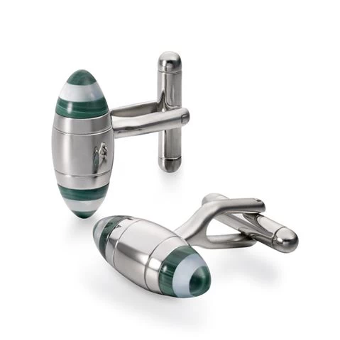 Designed in Scotland, these Zeppelin Target Cufflinks are strong, yet subtle. Crafted in stainless steel with malachite and Mother of Pearl insets, these cufflinks are perfect for more casual attire, while their simple design allows their gemstone of choice to shine.