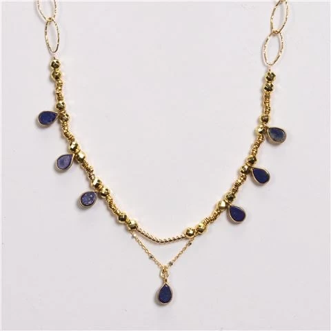 The collection of Drop Necklaces are a clever interpretation of classic jewellery but with a Greek twist. With two types of chains including delicate. long loops and sparkling beads at the front, these Drop Necklaces with precious stones may be worn on casual occasions or dressed up for the evening. Add an Ikarus Clutch Bag for total chic.